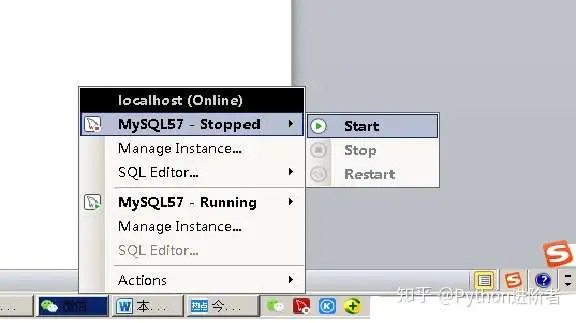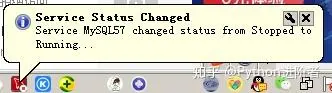 而且在状态栏的MySQL Notifier中也会弹出提示,如下图所示,MySQL的状态变为从停止变为启动。