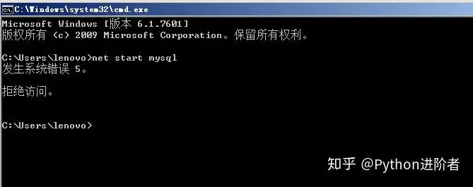 首先务必使用管理员权限进入到命令行、务必使用管理员权限进入到命令行、务必使用管理员权限进入到命令行,重要的事情说三遍,不然的话就会出现“发生系统错误 5。 拒绝访问。”这样的错误,如下图所示。
