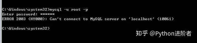 4、随后想当然的硬上进入MySQL,根本就不可能,只能撞南墙,败兴而归。