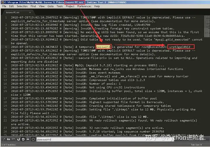 11、此时,通过电脑自带的记事本打开文件,是不太行得通的,通过sublime text就可以顺利打开了,以“password”为搜索项,很快就定位到初始密码了,如下图所示。