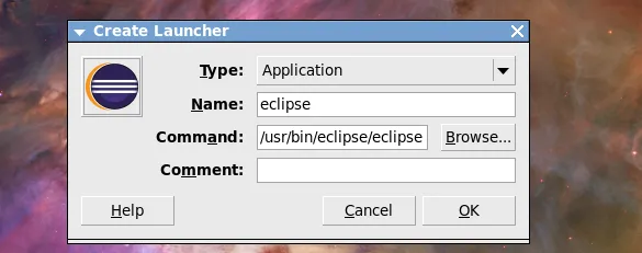 右键点击桌面,选择create launcher,然后将/usr/bin/eclipse/中的执行文件放在Command