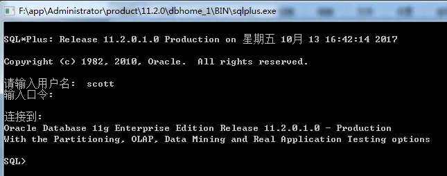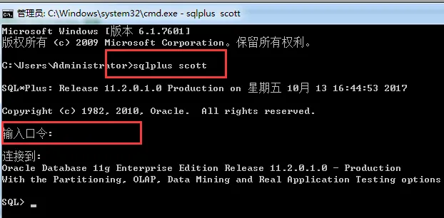 方式(2)使用win+r 输入cmd,进入dos命令窗口,然后输入用户名和密码,这里输入密码时不会有回显 或者使用直接输入命令sqlplus 用户名/密码即可