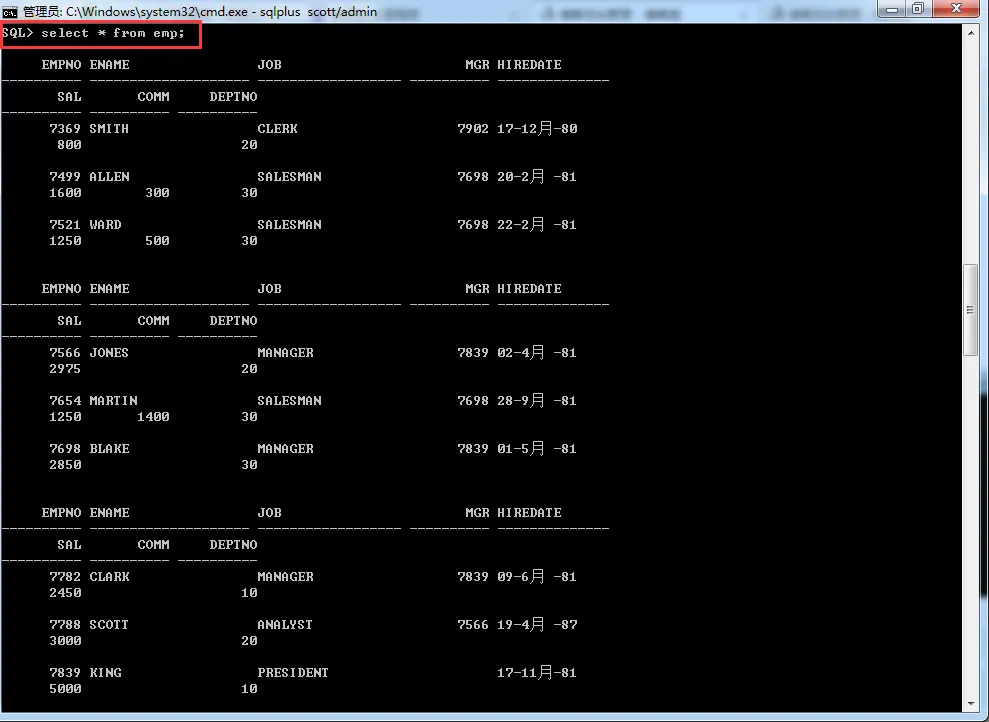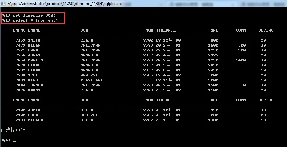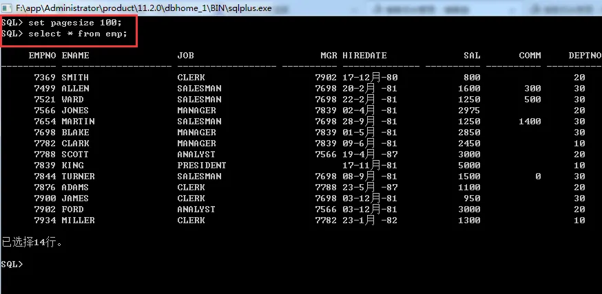 (2),设置每页的行数:SET PAGESIZE 行数;