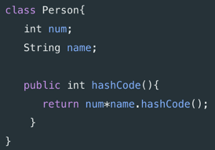 由于标识这个类的是他的内部的变量num和name,所以我们就根据他们返回一个hash值,作为这个类的唯一hash值。