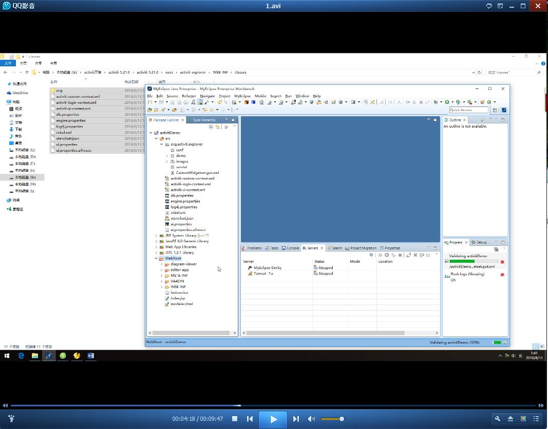 初衷:如今没有像样的activiti工作流的web流程设计器,要么界面难看,要么没有源码,要么功能缺失。Activiti官方提供的流程设计器文档和资料较少,根本没有介绍如何把流程设计器独立出来方法,网上资料和文章相对也很少,不能解决问题。特此,本人亲自录一套视频教程来解决此问题