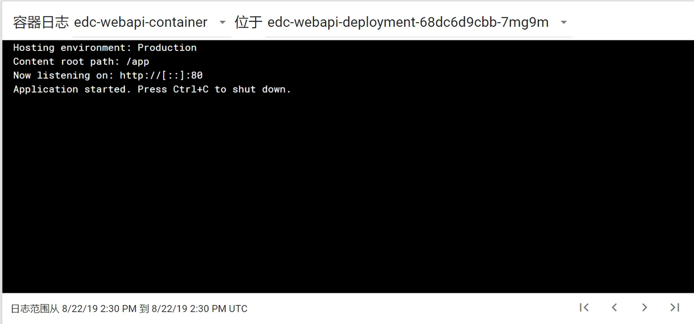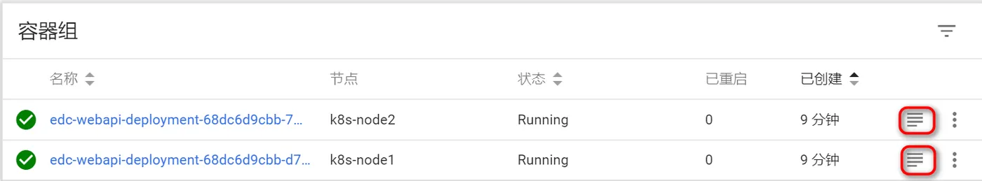 按钮,即可查看Pod的日志,与我们输入kubectl logs效果一样。