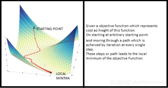 梯度下降法 (Gradient Descent Algorithm,GD) 是为目标函数J(θ),如代价函数(cost function), 求解全局最小值(Global Minimum)的一种迭代算法。本文会详细讨论按照准确性和耗费时间(accuracy and time consuming factor)将梯度下降法进行分类。这个算法在机器学习中被广泛用来最小化目标函数,如下图所示。