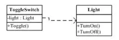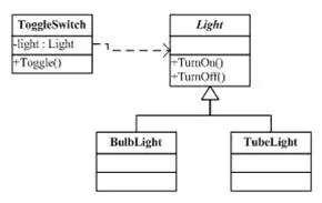 话说,我们有一个开关要控制一个灯的开和关这两个动作,最常见也是最没有技术含量的实现会是这个样子: