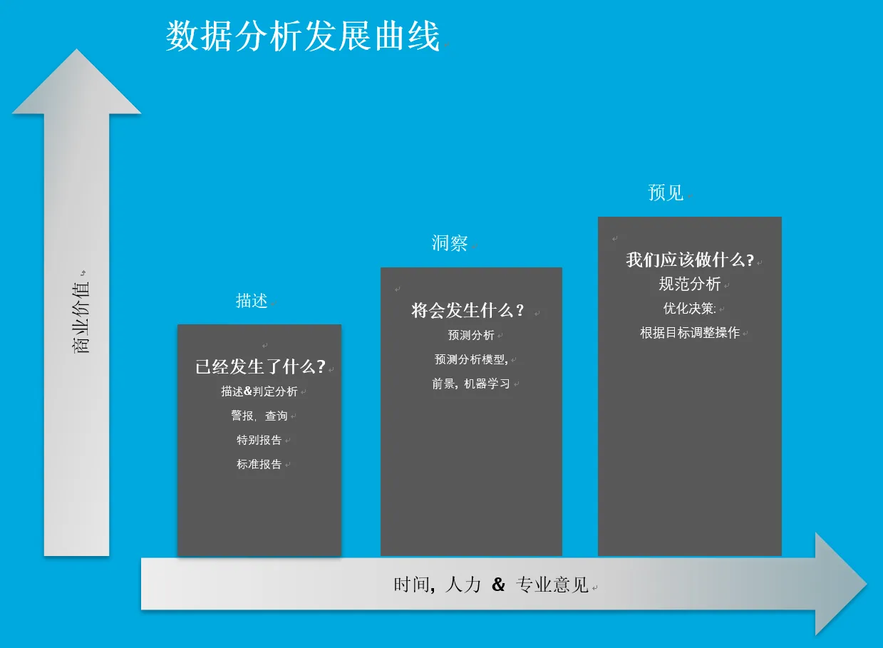 预测分析是历史数据分析过程的延续。不过它可以更快的寻找出数据的潜在价值。能够成功克服数据分析复杂性的企业不仅能够得出何时或为什么会发生某些事情的结论,并且能够根据数据测量方式的变化了解未来将会发生什么。