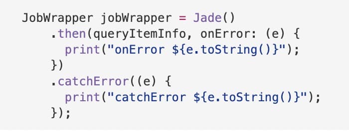 任务编排框架把捕获的异常信息通过两种方式传递给开发同学,一种是针对单个任务的onError,一种是针对整个链路的catchError,通过这两种方式可以优雅的获取异常堆栈并进行灵活的异常处理。