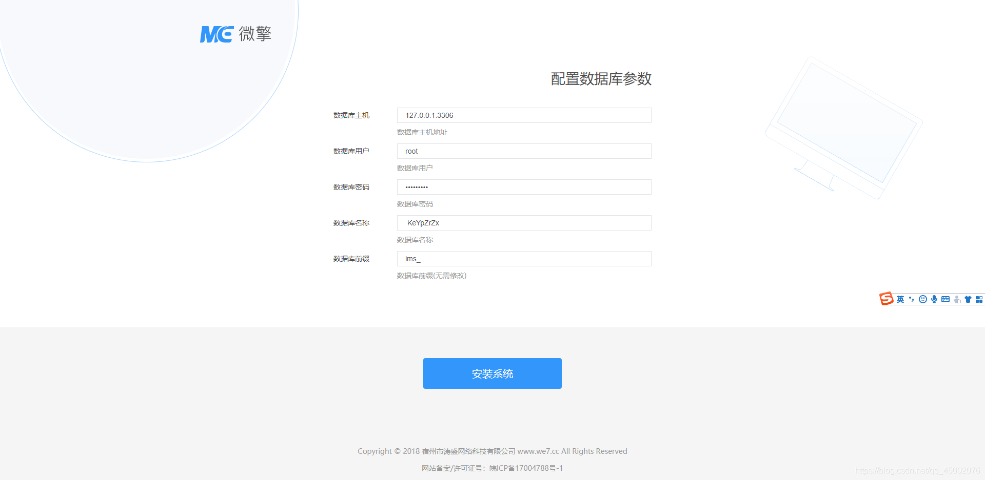输入数据库名称和用户名及其密码,上面数据库名称应该是 wq,然后进入这一步