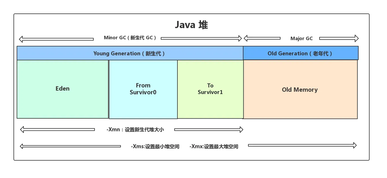 除此之外,可以通过 -Xmn 虚拟机参数调大新生代的大小,让对象尽量在新生代被回收掉,不进入老年代。
