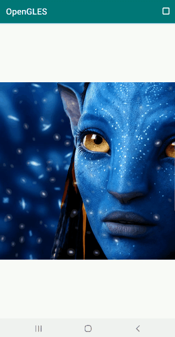 //开启混合 glEnable(GL_BLEND); glBlendFunc(GL_SRC_COLOR, GL_ONE_MINUS_SRC_ALPHA); //使用新的着色器程序 glUseProgram(m_BlurProgramObj); glActiveTexture(GL_TEXTURE0); glBindTexture(GL_TEXTURE_2D, m_TextureIds[2]); GLUtils::setFloat(m_BlurProgramObj, "s_TextureMap", 0); scaleLevel = static_cast<float>(1.0f + dScaleLevel * pow(-1, m_FrameIndex / 200)); scaleLevel = scaleLevel < 1.0 ? scaleLevel + 0.2f : scaleLevel; m_ScaleY = m_ScaleX = scaleLevel + 0.8f; UpdateMVPMatrix(m_MVPMatrix, m_AngleX, m_AngleY, m_TransX * 2.5f, m_TransY * 2.5f, (float)screenW / screenH); GLUtils::setMat4(m_BlurProgramObj, "u_MVPMatrix", m_MVPMatrix); glDrawElements(GL_TRIANGLES, 6, GL_UNSIGNED_SHORT, (const void *)0); //关闭混合 glDisable(GL_BLEND);