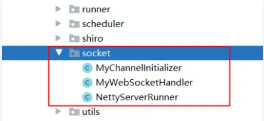 publicclassMyChannelInitializerextendsChannelInitializer<SocketChannel> { privatestaticfinalintMAX_CONTENT_LENGTH=1024*1024; privatestaticfinalCharsetCHARSET_UTF8=Charset.forName(CenterKeys.CHARSET_UTF8); privateStringwsUri; publicMyChannelInitializer(StringwsUri) { Preconditions.checkArgument(StringUtils.isNotBlank(wsUri), "Socket地址不能为空"); this.wsUri=wsUri; } protectedvoidinitChannel(SocketChannelchannel) throwsException { ChannelPipelinepipeline=channel.pipeline(); // HTTP 服务的解码器pipeline.addLast(newHttpServerCodec()); // HTTP 消息的合并处理pipeline.addLast(newHttpObjectAggregator(MAX_CONTENT_LENGTH)); pipeline.addLast(newStringDecoder(CHARSET_UTF8)); pipeline.addLast(newStringEncoder(CHARSET_UTF8)); // 以块的方式来写的处理器pipeline.addLast(newChunkedWriteHandler()); //自定义的业务handlerpipeline.addLast(MyWebSocketHandler.getInstance()); pipeline.addLast(newWebSocketServerProtocolHandler(wsUri, "WebSocket", true)); } }