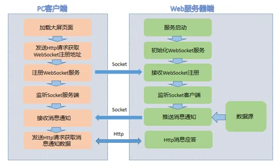 下图是项目中有关使用websocket实时推送数据到大屏端的服务流程图。