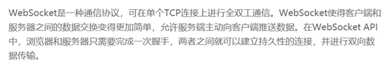 首先要区别Websocket和我们常用的HTTP协议,HTTP协议只能实现客户端请求,服务端响应的这种单项通信。而WebSocket可以实现客户端与服务端的双向通讯,说白了,最大也是最明显的区别就是可以做到服务端主动将消息推送给客户端。