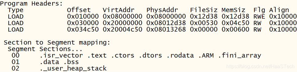 相关信息也可通过map文件,其同样也是通过elf生成。