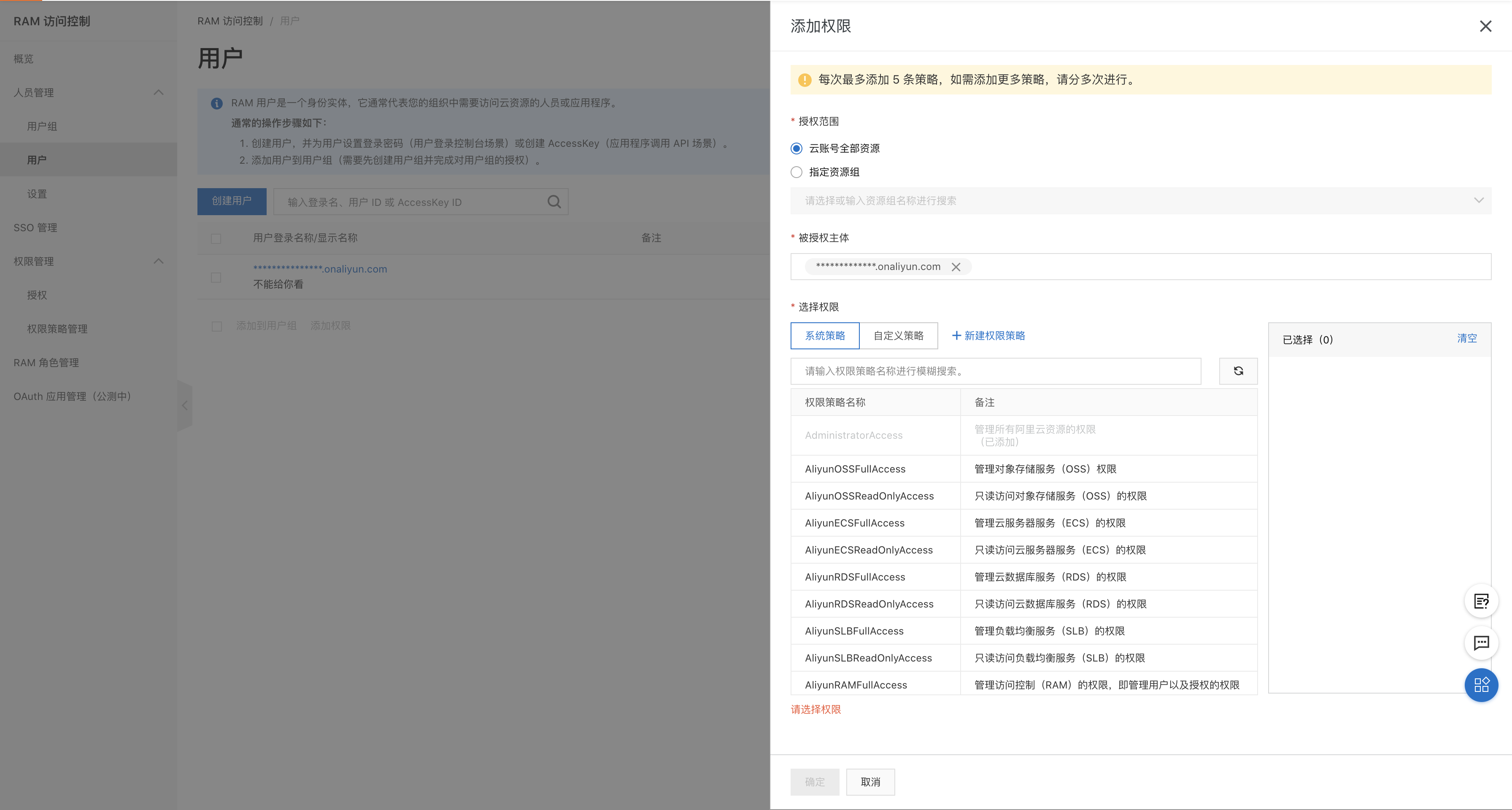 安全起见,我们可以采取创建RAM子账号的形式,来对权限进行分离。