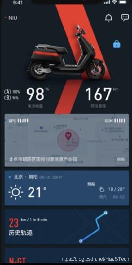 到了智能手机时代,随着智能手机的普及,能否用手机来替代钥匙呢?答案是肯定的,以小牛,九号等电动车厂为代表,智能电动车开始出现,用户在自己的智能手机上安装APP后,可以打开APP,并在APP中与自己的车辆互动,包括获取车辆状态,以及对车辆进行锁车/解锁/上下电等操作。