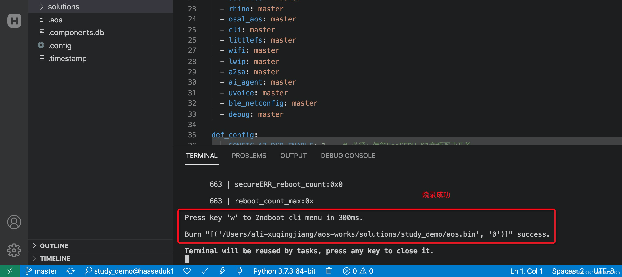 - 点击开始烧录,稍等一分钟就可以看到VS Code提示“成功烧录”