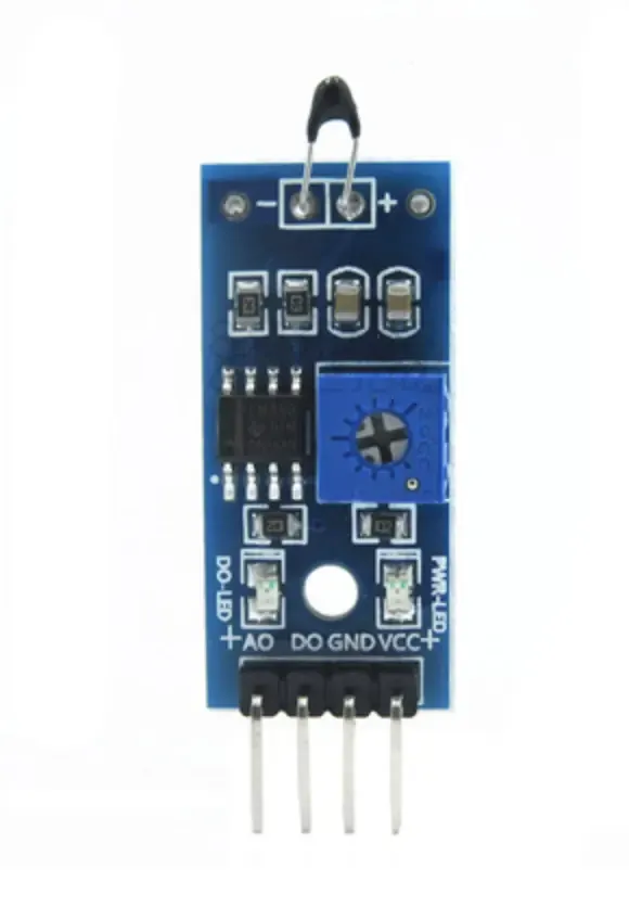 此热敏模块同样包含两个LED指示灯、灵敏度调节单元和4个引脚,引脚如下: