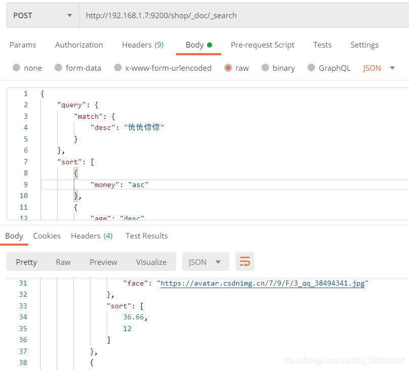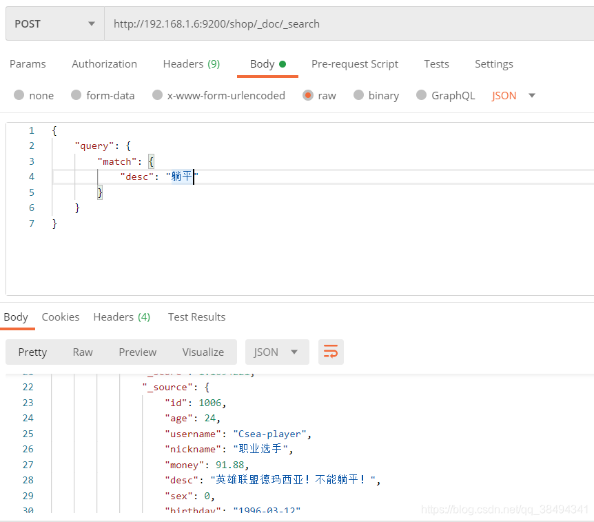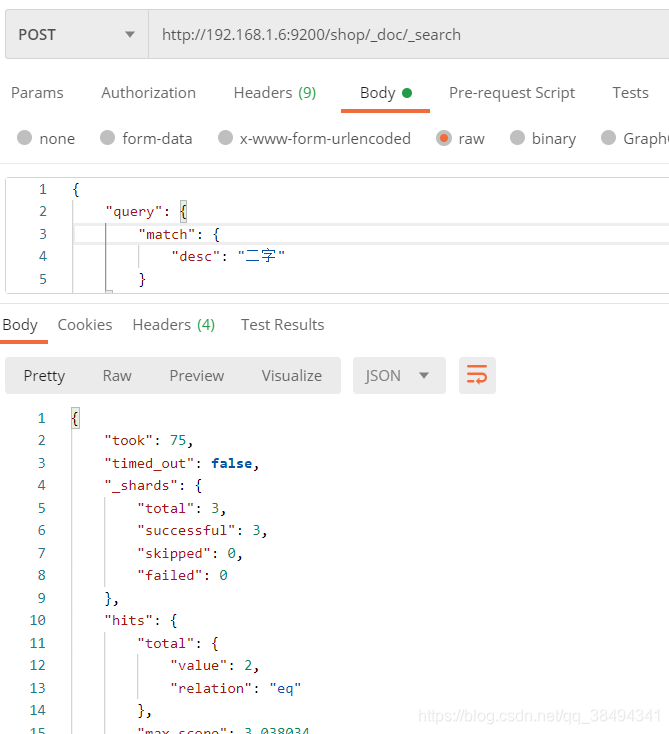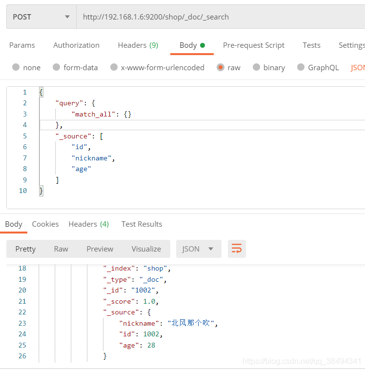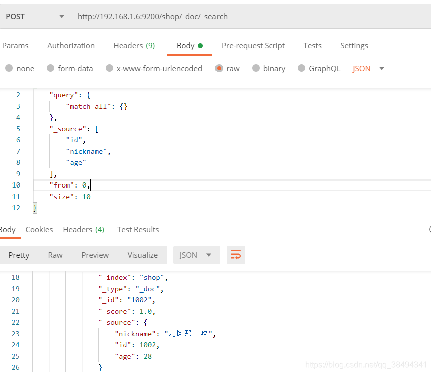 Post请求:http://{IP}:{port}/{索引名称}/_doc/_search