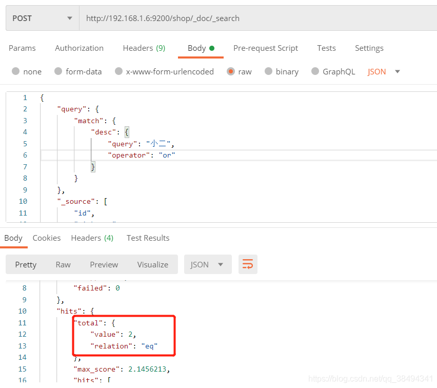 但是如果把operator改为and,那么在匹配的内容中必须同时出现分词内容,也就是小、二这两个词必须出现,顺序没有关系。