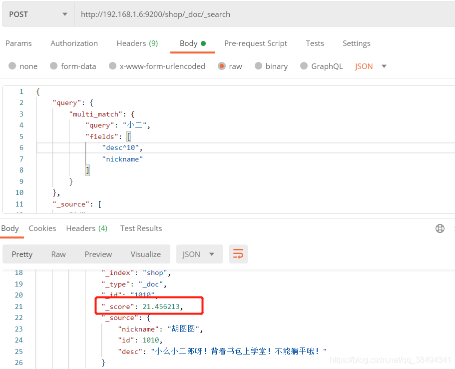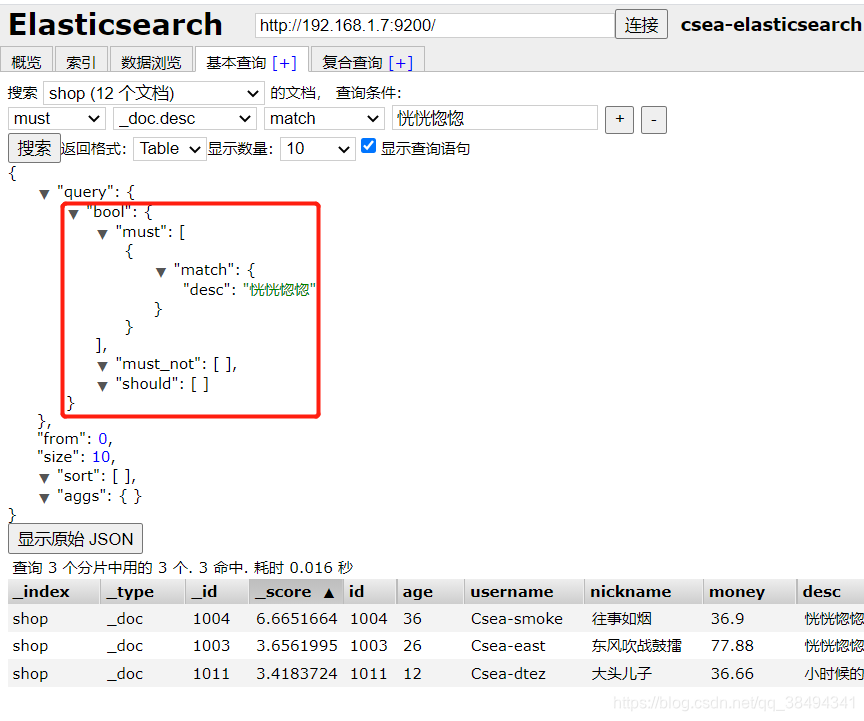 这里我给desc设置了权重,这样他的score就变大了,score越大,他在返回数据的排名中就越靠前