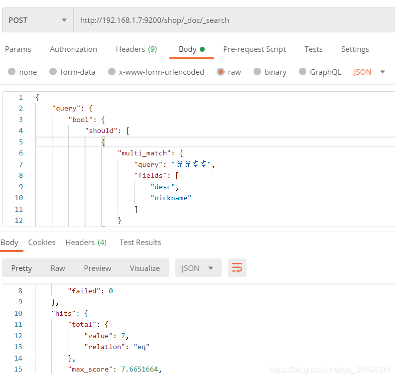 多字段的匹配查询,fields中就去放入想要匹配的字段