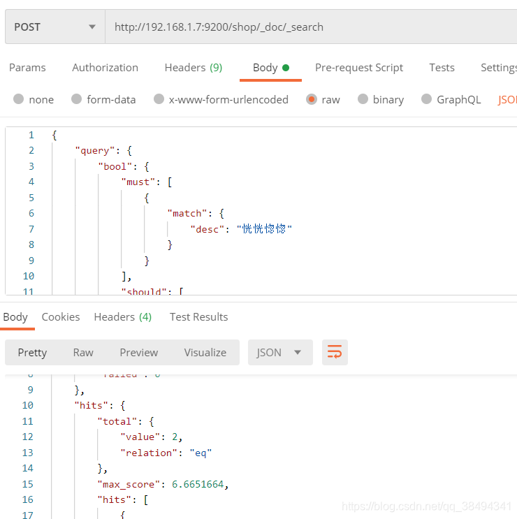 should: 相当于sql中的or查询,这个查询中的条件只要满足或者即可。