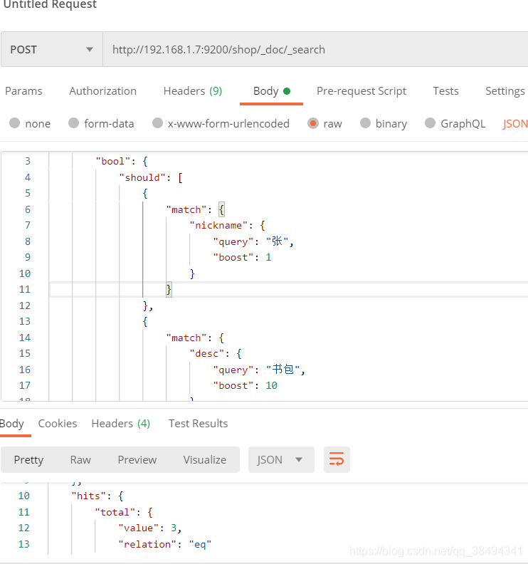 当需要对某个字段进行权重设置,也就是希望查询出来的某个字段匹配的数据信息往前排,就可以通过权重来实现