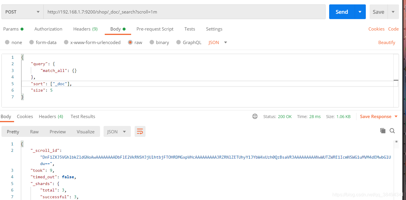 POST:http://{IP}:{port}/{索引}/_doc/_search?scroll={时间}