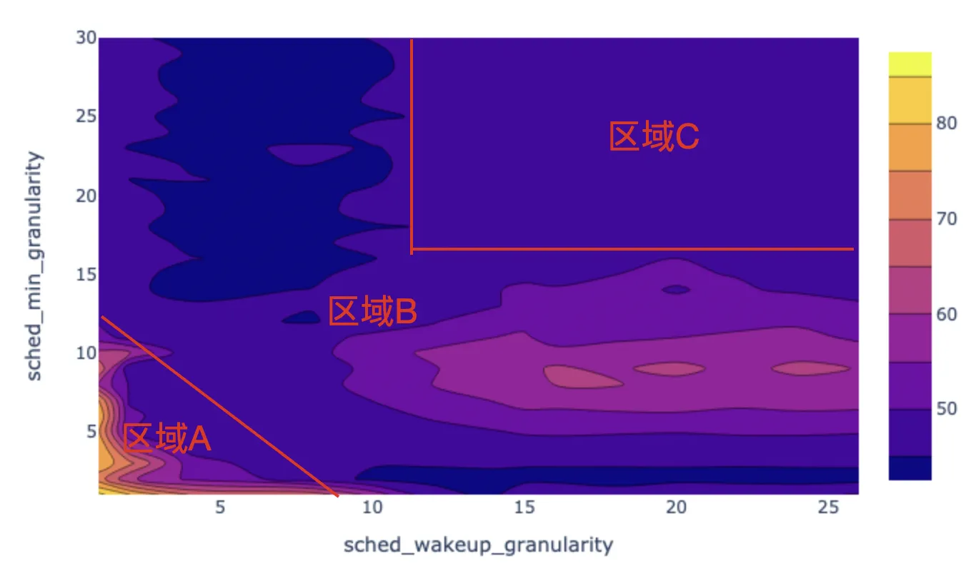 为了探索双参数对于调度器的影响,我们选择每次固定一个参数,研究另一个参数变化对于性能的影响,并使用系统知识来解释这种现象背后的原理。