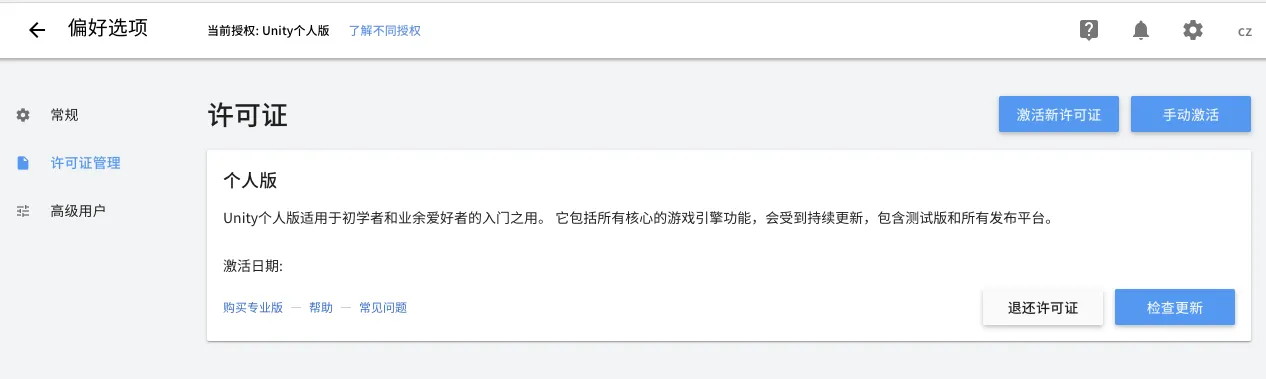 Unity Personal 订阅具有以下限制:
