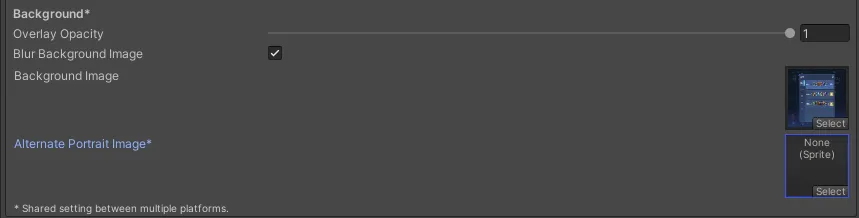 - Splash Image:游戏启动时显示的图像。此部分还包括用于创建启动画面的常用设置。