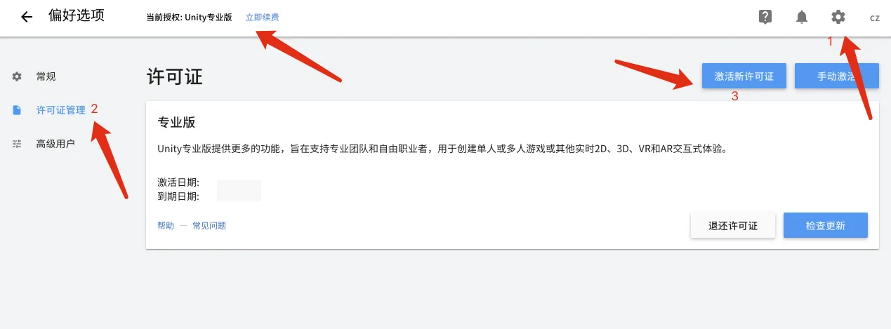 在Hub的设置界面 --> 许可证管理 进行激活证书