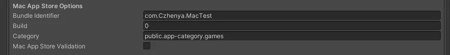 - Mac App Store Validation:验证Mac商店【上传AppStore时开启,否则会打不开游戏,这个选项可以以防止用户不在购买游戏的计算机上而在另一台计算机上运行游戏。】