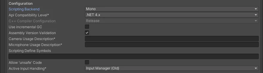 Scripting Backend:选择要使用的脚本后端。