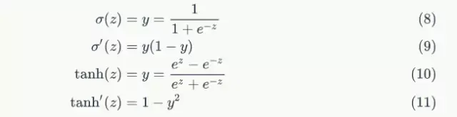 接下来的推导中,我们设定gate的激活函数为sigmoid函数,输出的激活函数为tanh函数。他们的导数分别为: