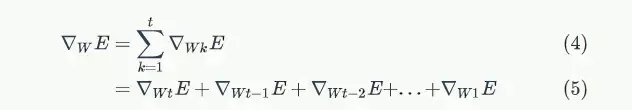梯度消失到底意味着什么?在《零基础入门深度学习(4):循环神经网络》中我们已证明,权重数组W最终的梯度是各个时刻的梯度之和,即: