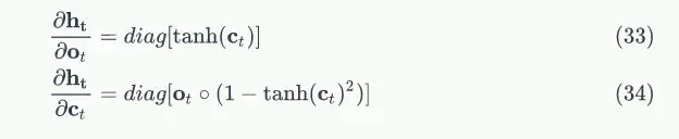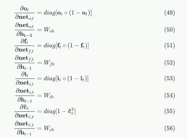 下面是最终的偏置项梯度,即将各个时刻的偏置项梯度加在一起: