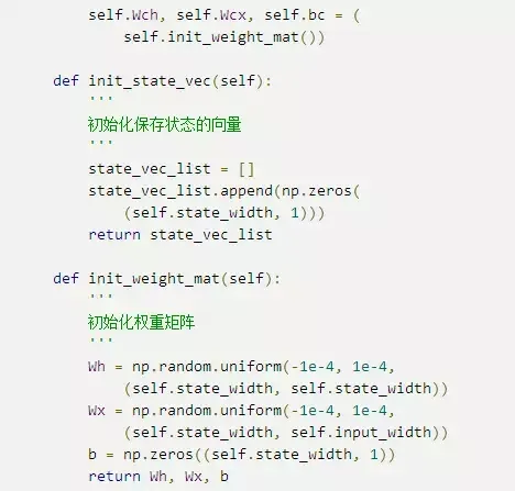 根据LSTM前向计算和方向传播算法,我们需要初始化一系列矩阵和向量。这些矩阵和向量有两类用途,一类是用于保存模型参数,例如