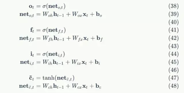 式1到式6就是LSTM前向计算的全部公式。至此,我们就把LSTM前向计算讲完了。