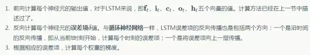 LSTM的训练算法仍然是反向传播算法,对于这个算法,我们已经非常熟悉了。主要有下面三个步骤: