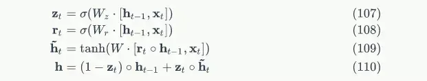 将输入门、遗忘门、输出门变为两个门:更新门(Update Gate)Zt和重置门(Reset Gate)rt。