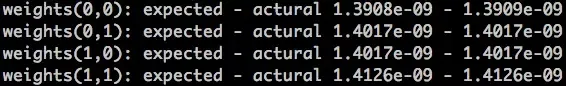 我们只对做了检查,读者可以自行增加对其他梯度的检查。下面是某次梯度检查的结果: