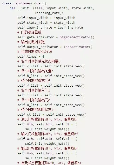 和前两篇文章代码架构一样,我们把LSTM的实现放在LstmLayer类中。