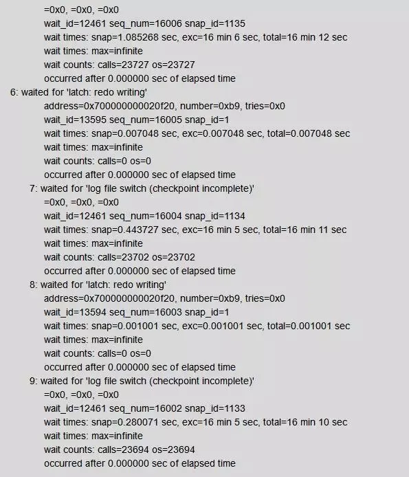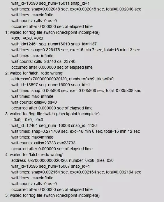 LGWR进程阻塞了5817个会话,等待日志切换完成