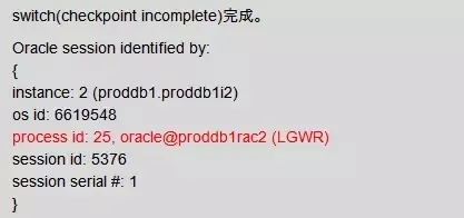 可以看到这个会话被inst: 2, sid: 5376阻塞。5376就是节点2的LGWR进程,他一直在等待log file switch(checkpoint incomplete)完成。