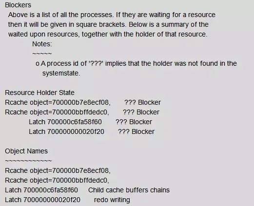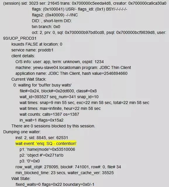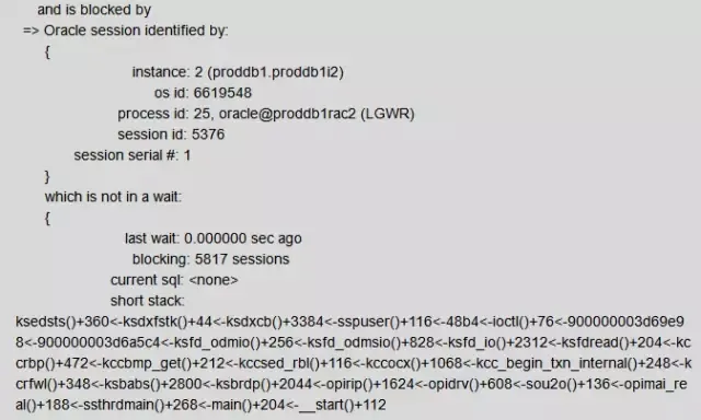 在12月16日故障发生过程中,已对数据库2节点做全局HangAnalyze分析。发现有两个Blocker分别阻塞5817个会话和3694个会话,接下来依次分析。